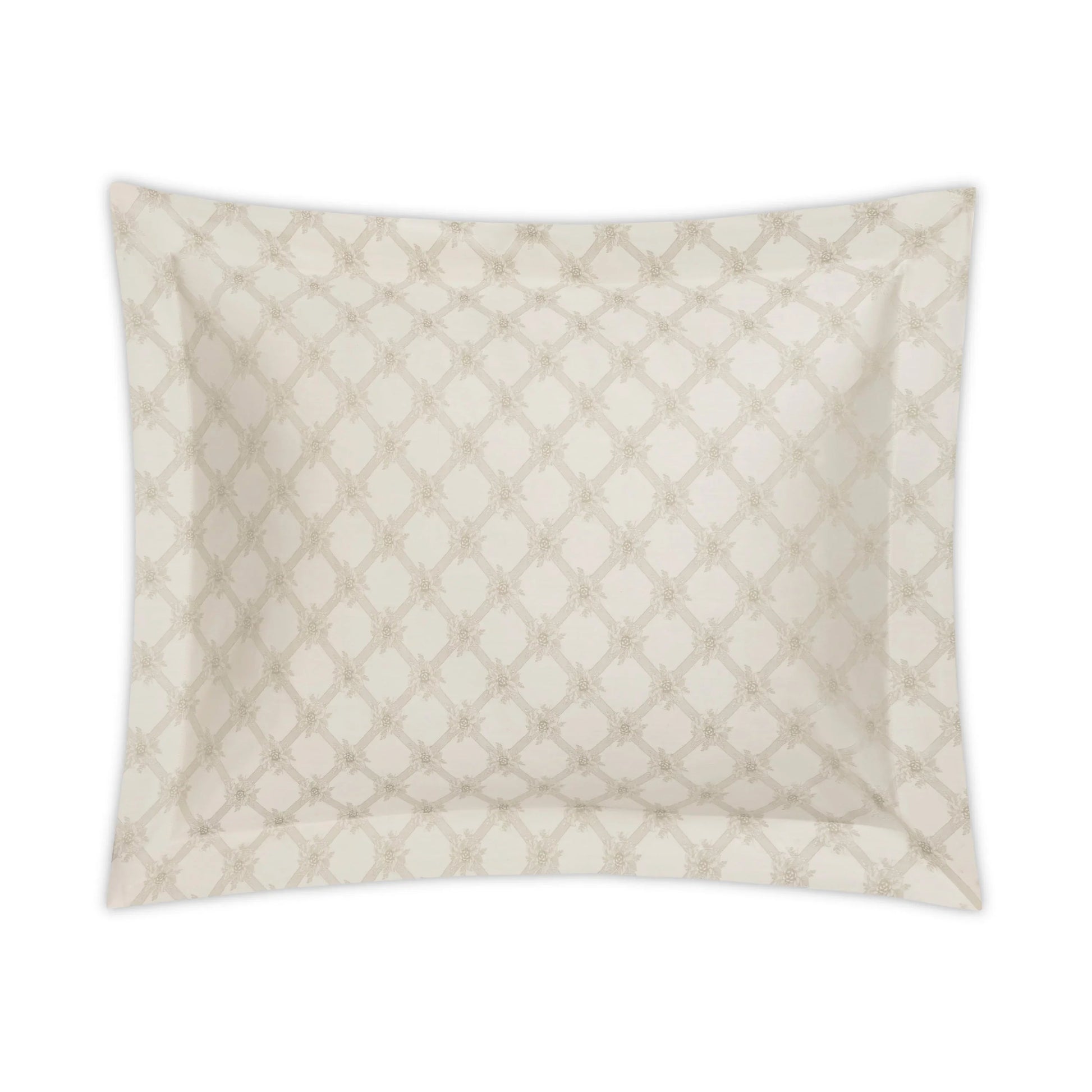 Les housses de couette Alexandra sont fabriquées en jacquard italien 100 % coton égyptien, 300 fils au pouce carré, avec des attaches d'angle intérieures, un bord de couteau fini avec une fermeture à bouton.