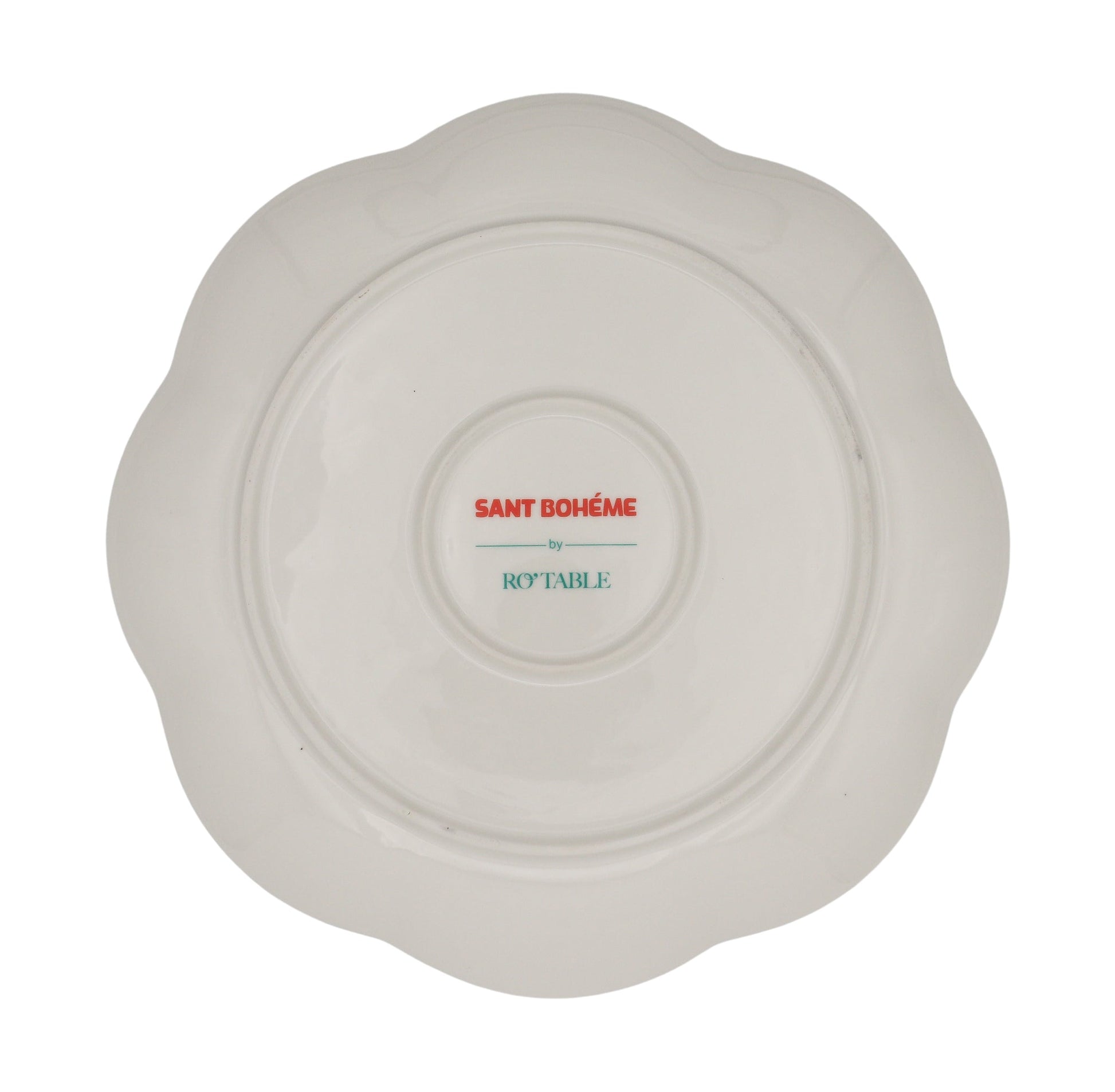 Un motif complexe de coquille Saint-Jacques vert d'eau capture la tranquillité du paysage côtier. Son contour festonné, rehaussé d'une douce teinte vert d'eau pastel, accentue son charme océanique. Associez-le harmonieusement à notre vaisselle assortie pour une expérience culinaire côtière complète.