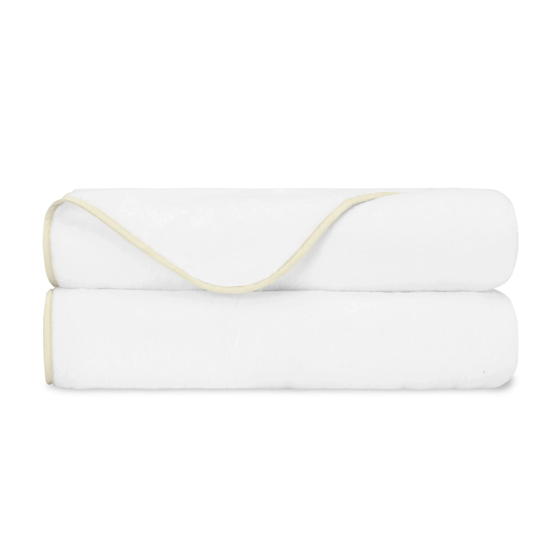Nos serviettes de bain Bodrum sont conçues avec un bord passepoilé arrondi contrasté pour une finition moderne.