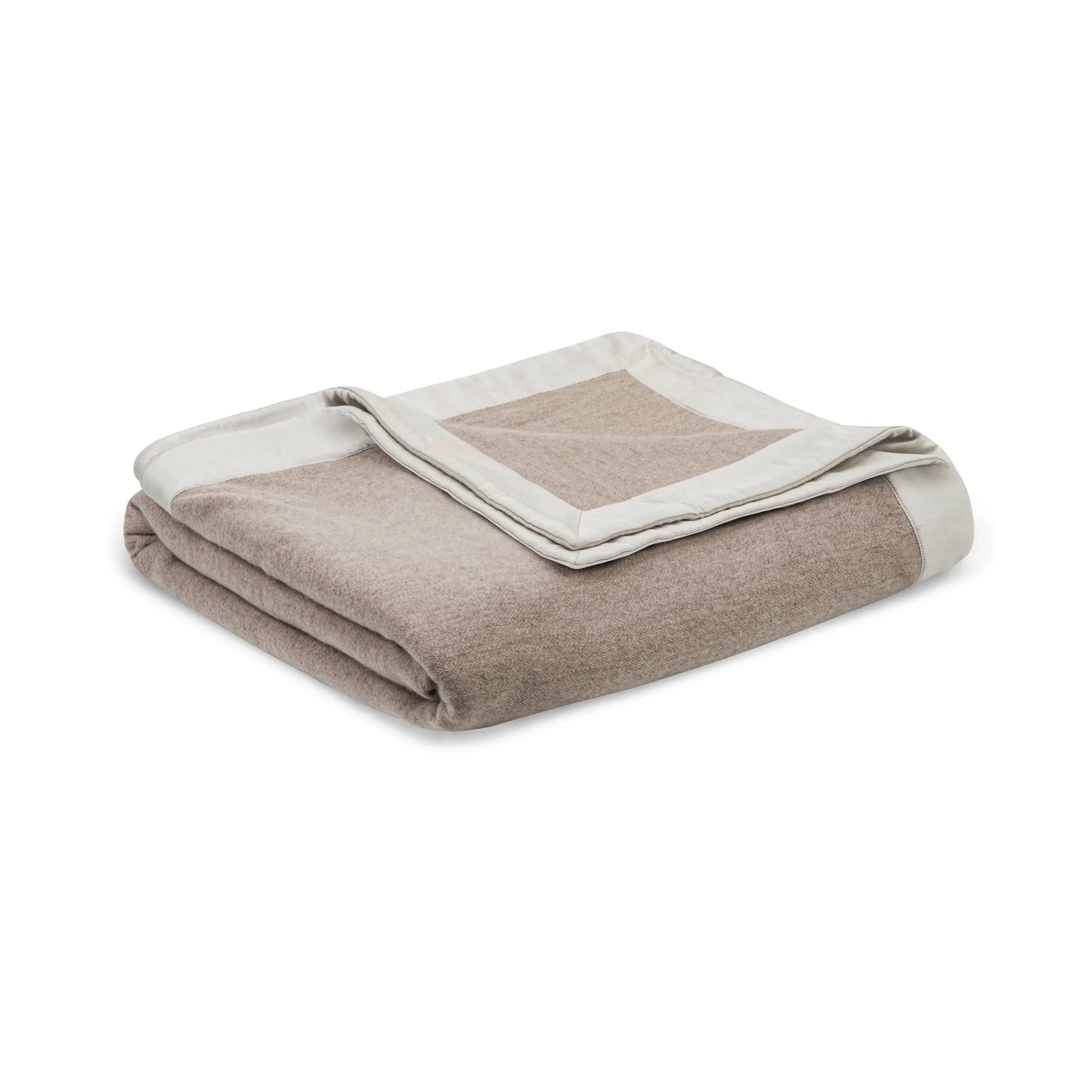 Nos couvertures en cachemire Brunello sont finies avec une bordure en modal unie et ton sur ton. |