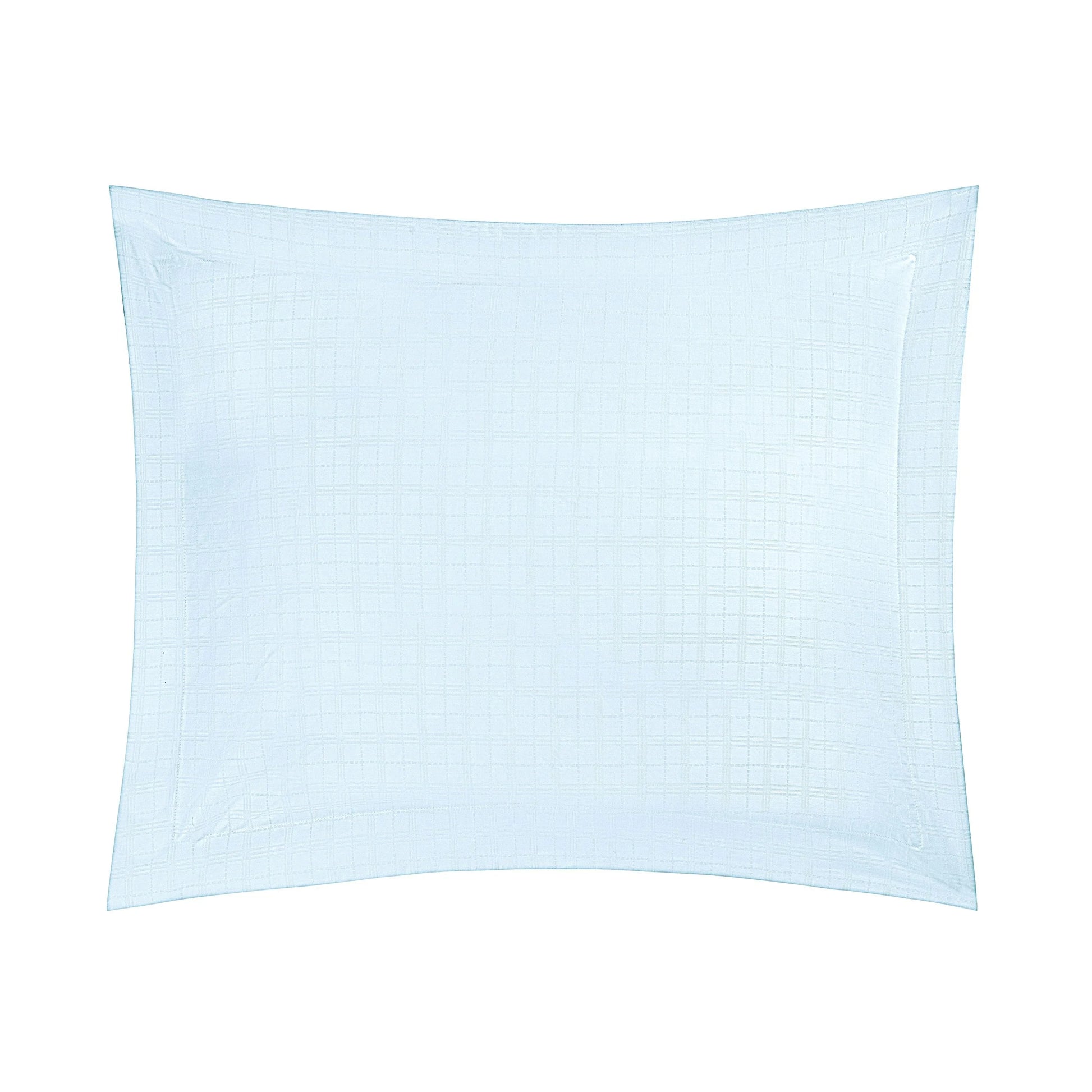 Les ensembles de taies d'oreiller Camden sont confectionnés en jacquard italien 100 % coton égyptien 300 fils au pouce carré, avec un motif à carreaux et une fermeture à rabat. (Remarque : les taies d'oreiller Boudoir sont vendues à l'unité.)