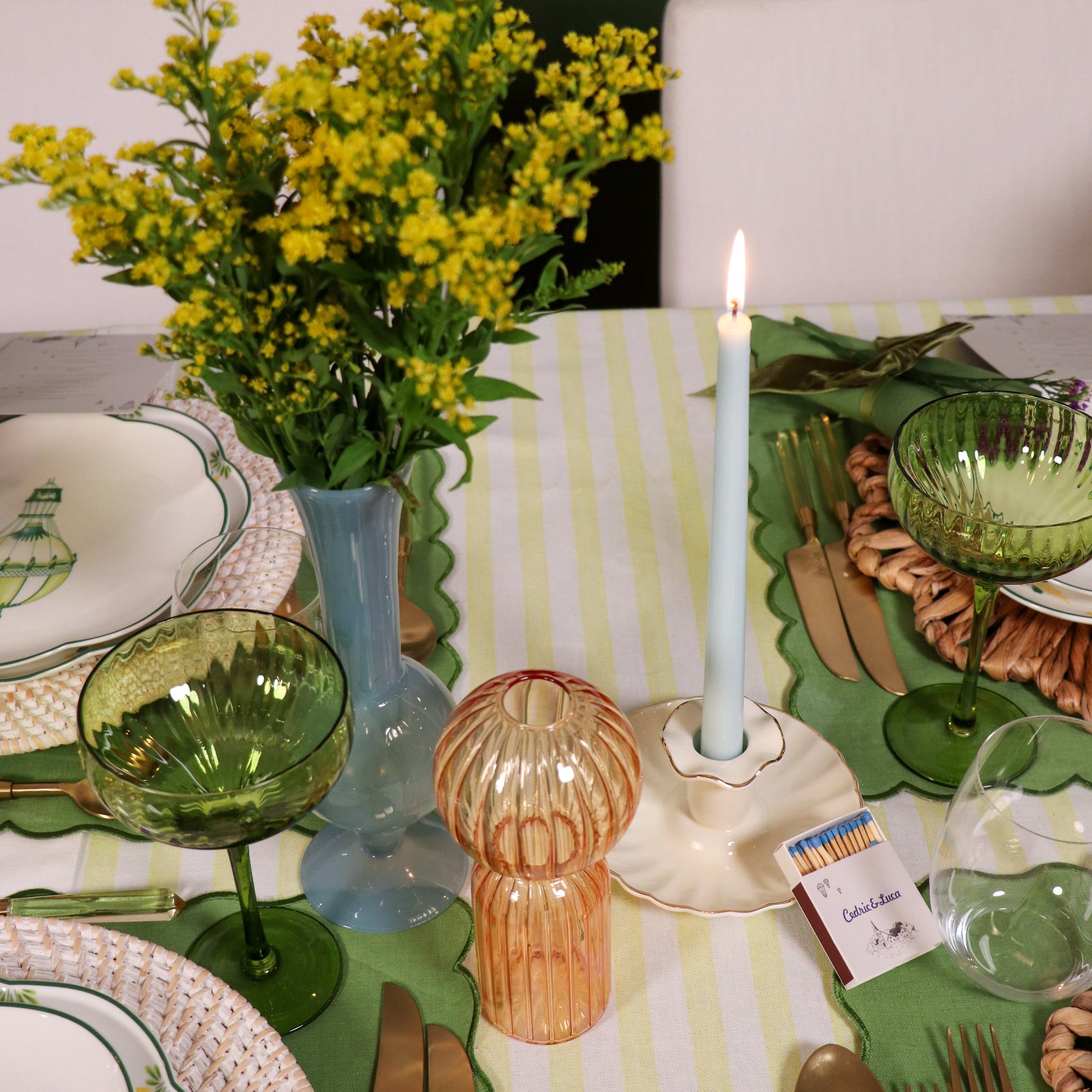 Délicate comme un nuage, cette bougie conique arbore une teinte bleu bébé sereine, apportant une aura apaisante à votre espace.