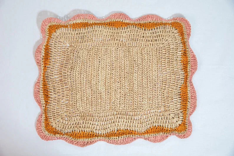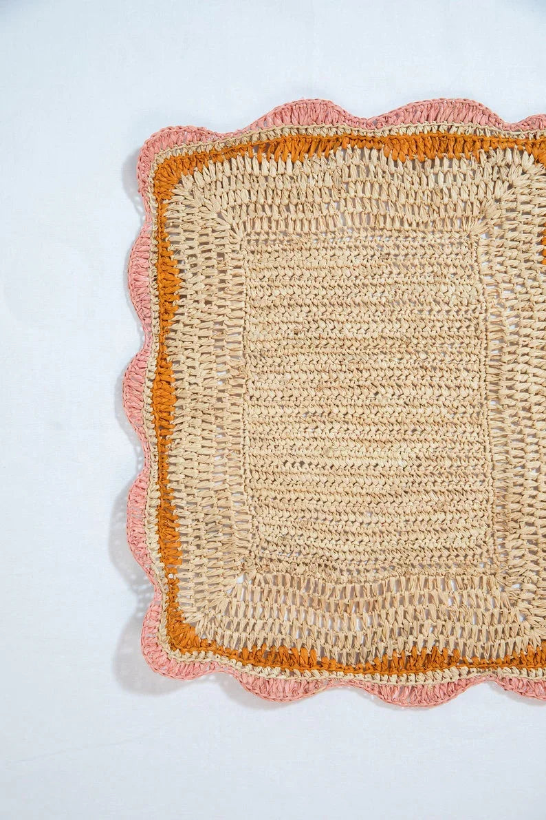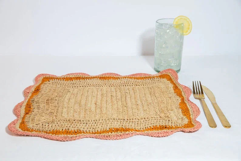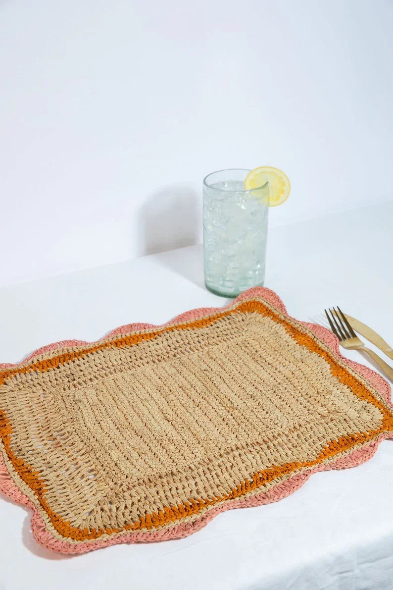 Découvrez les sets de table rectangulaires en raphia aux bords rose/orange : le complément idéal à votre décoration de table ! Ces sets de table rectangulaires tissés à la main sont non seulement élégants et fonctionnels, mais ils apportent également une touche de charme naturel à votre table.