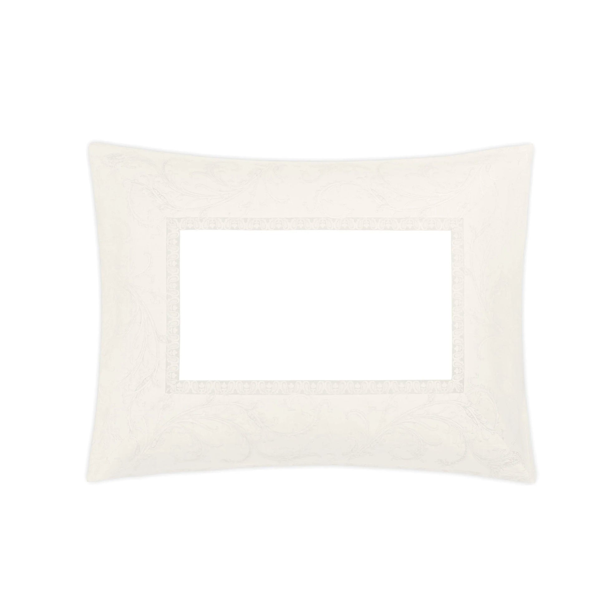 Les housses de couette Glory sont en percale blanche naturelle unie, avec une bordure cachemire jacquard italienne, finie avec une fermeture enveloppe.
