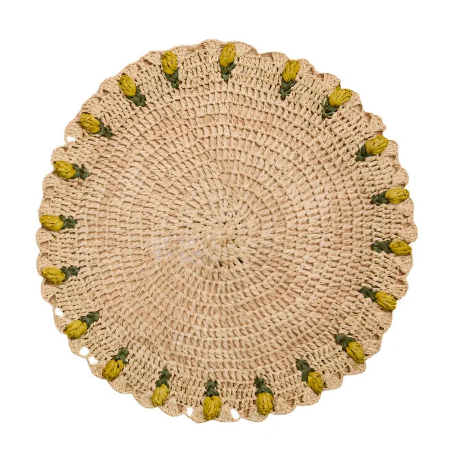 Célébrez la beauté des fleurs printanières avec ce set de table en raphia crocheté à la main en forme de tulipe. Fabriqué avec soin par des artisanes malgaches, chaque set de table arbore une charmante silhouette florale, apportant une touche de chaleur et de fantaisie à votre table printanière et pascale.