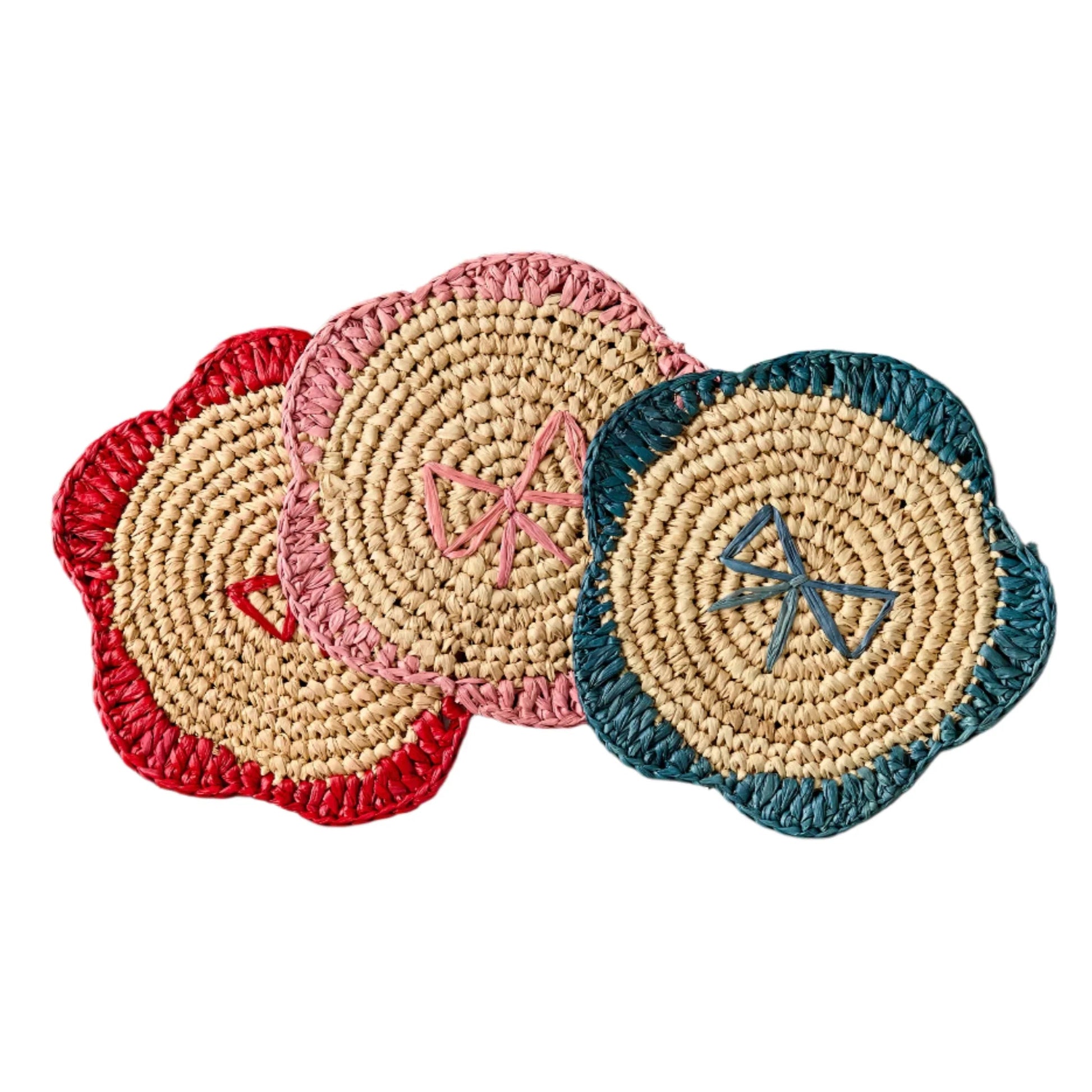 🌿 Rehaussez votre table bohème avec notre ensemble de sous-verres à franges en raphia tissé à la main 🌿