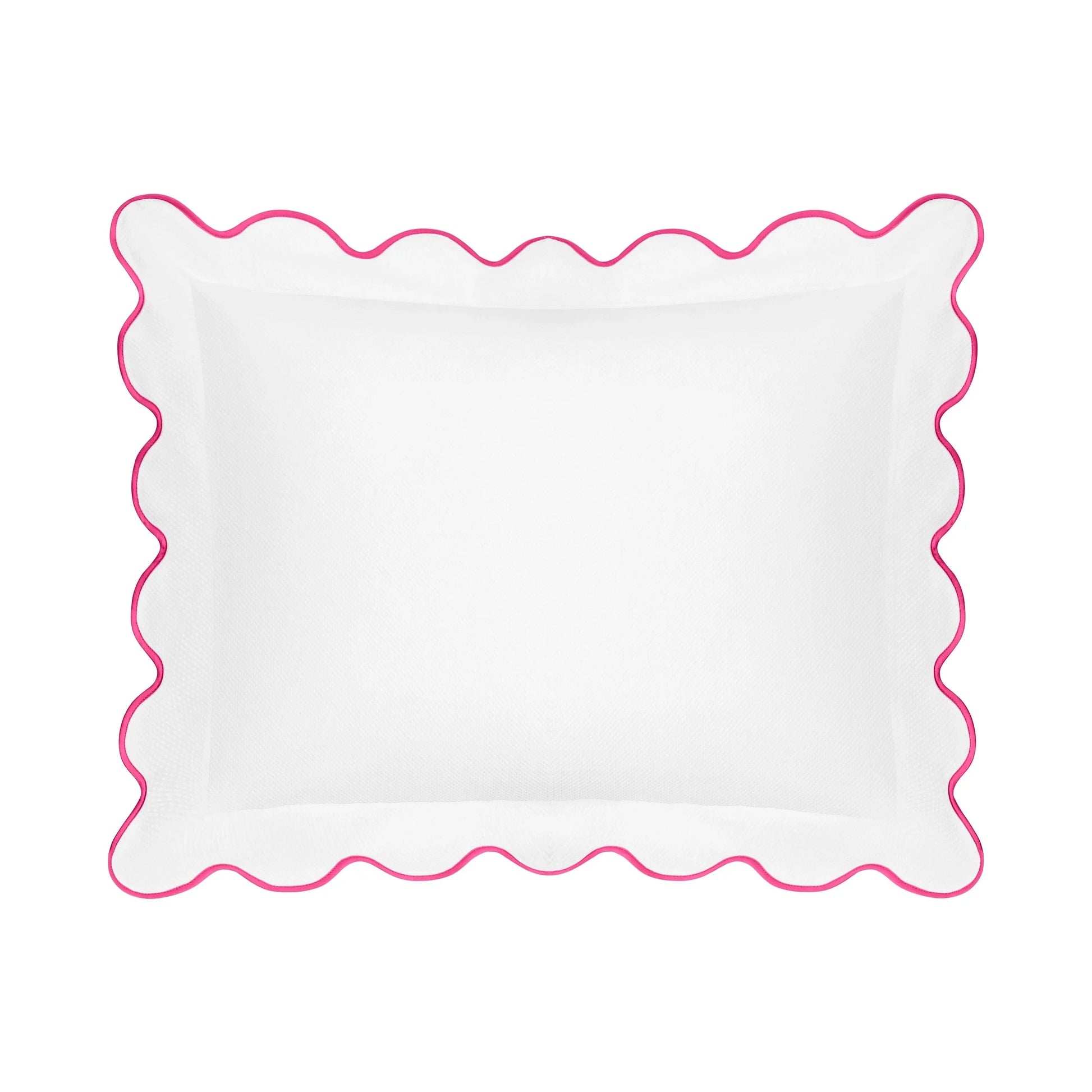 Nos taies d'oreiller en nid d'abeille sont dotées d'une bordure festonnée, d'une bride passepoilée en satin et d'un support d'enveloppe en percale ton sur ton.