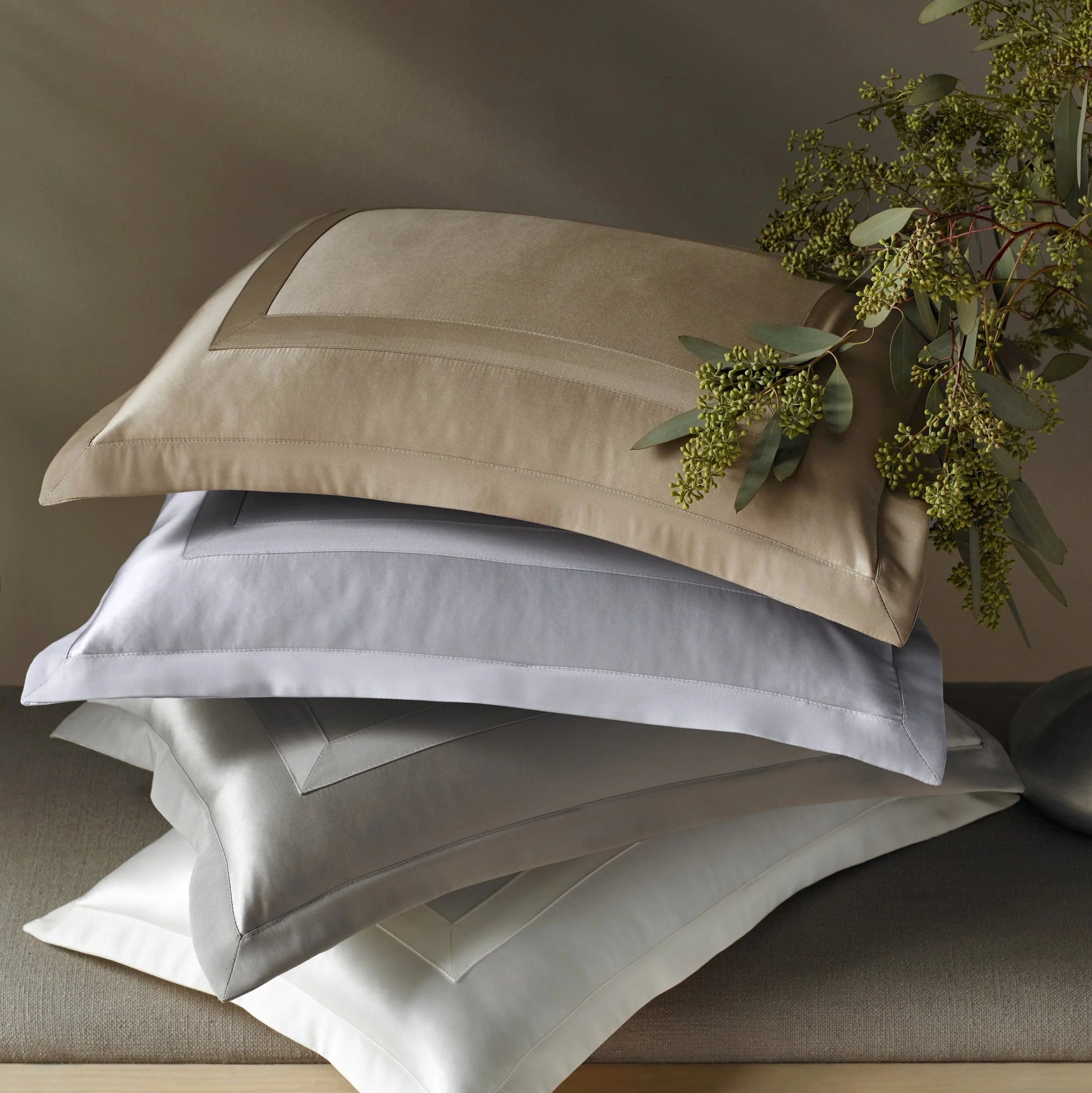 Les taies d'oreiller Lustro sont conçues avec un corps en soie solide, une bride inversée et un insert inversé de 1' sur le corps de la taie d'oreiller.