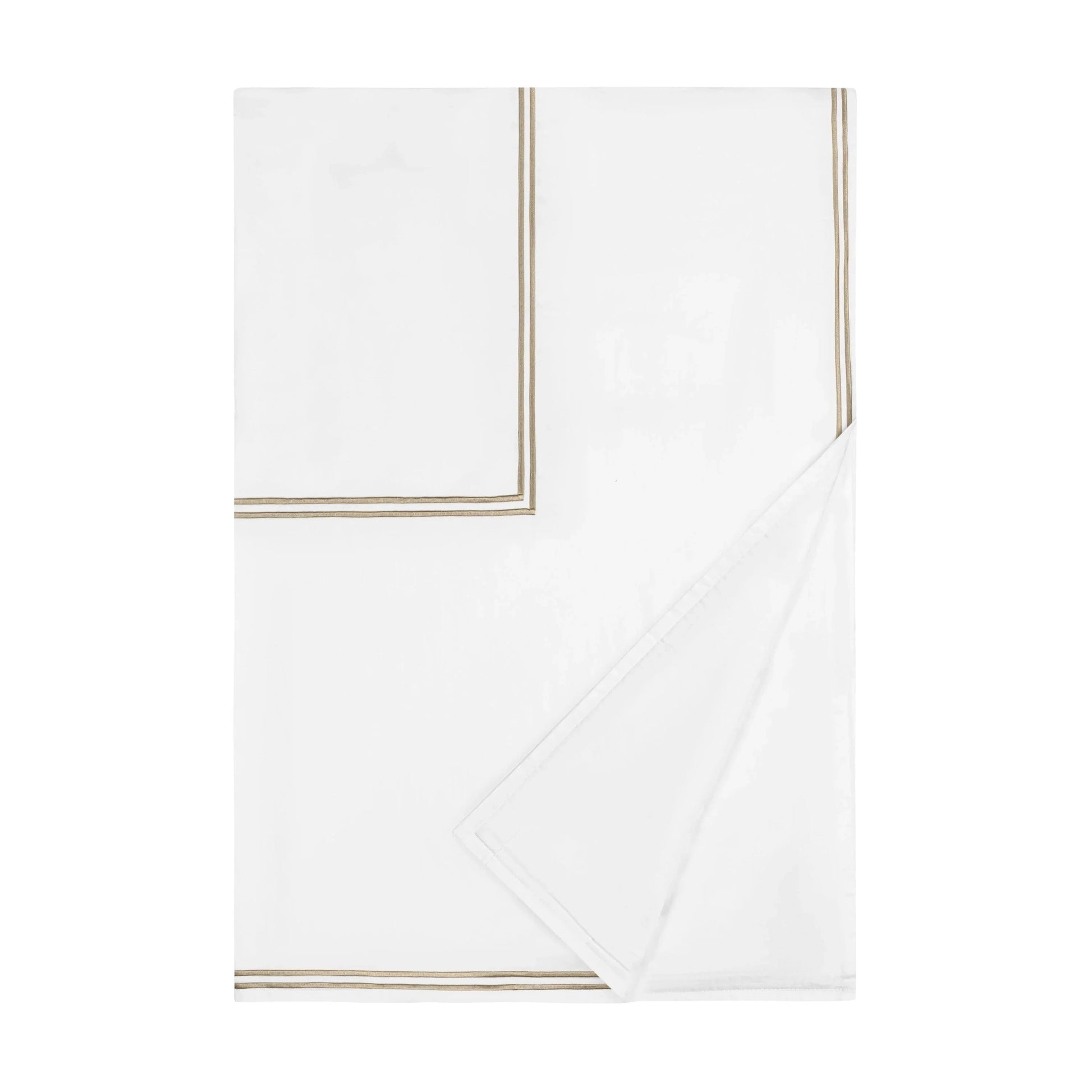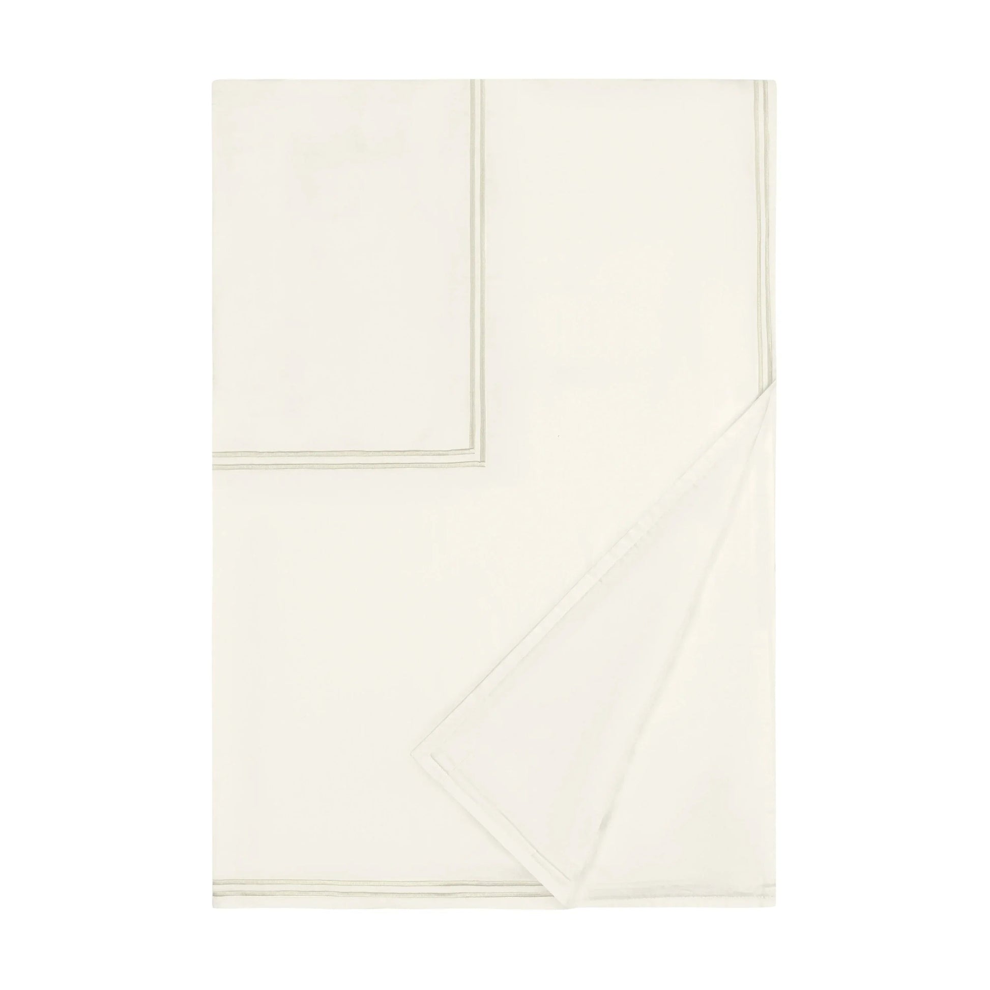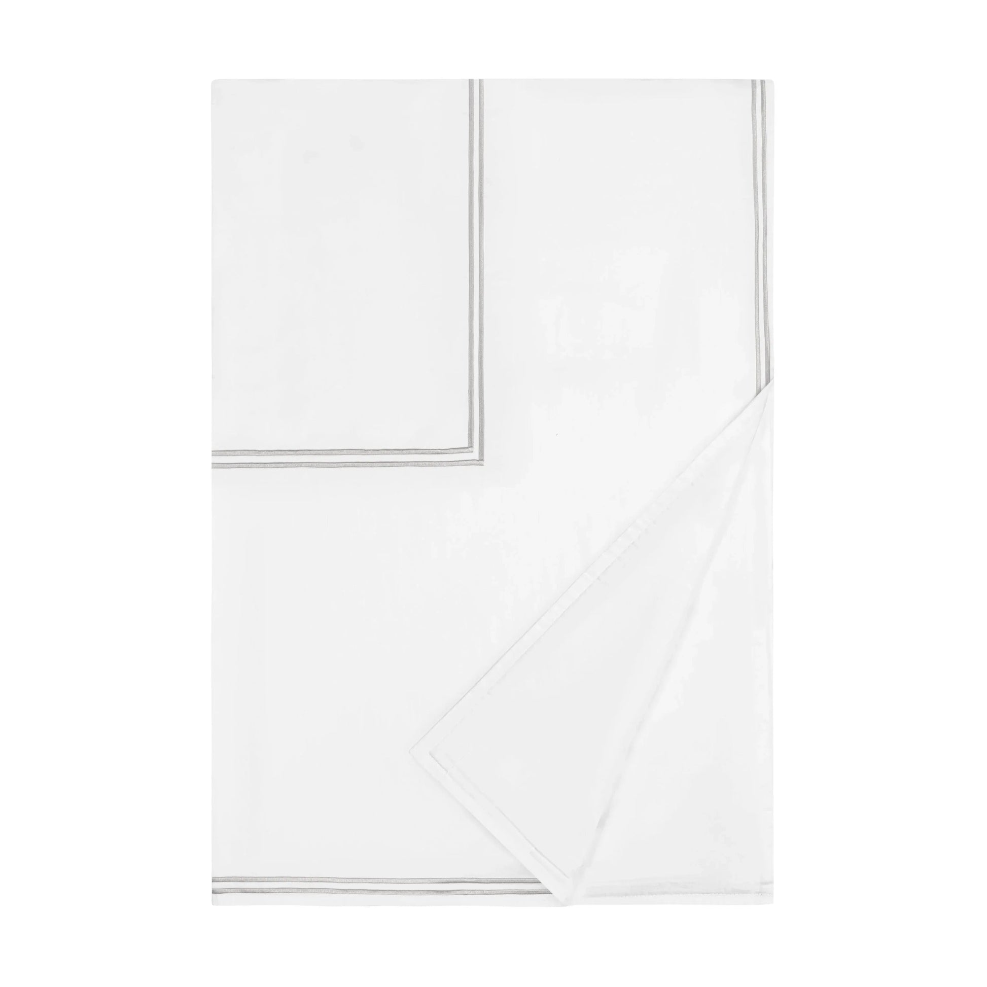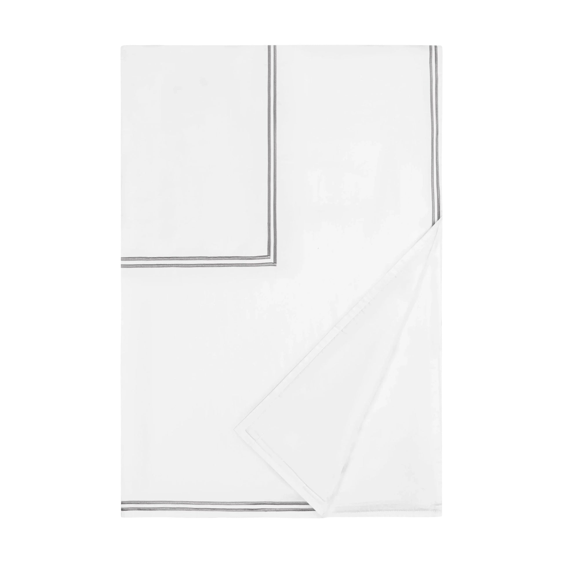 Les housses de couette Madison sont conçues avec un mini-bord de 1,27 cm, une double broderie au point satin à l'ourlet et une autre en U encadrant le matelas. (Remarque : les housses de couette sont dotées de quatre attaches d'angle et d'une fermeture à boutons.)