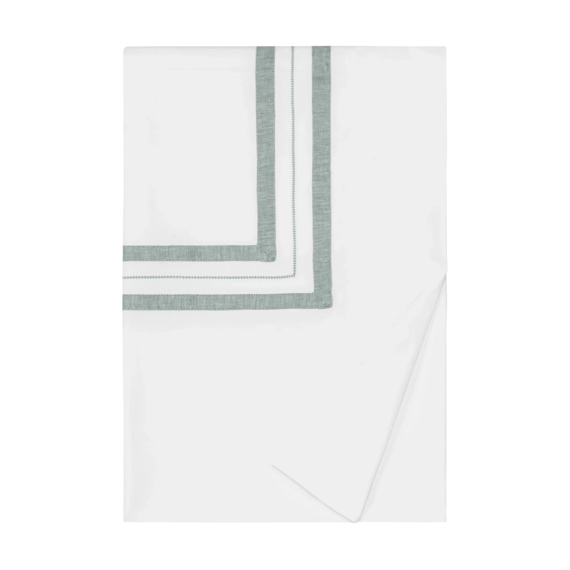 Les housses de couette Malibu sont conçues avec deux rubans de lin appliqués coupés à la main et un ourlet ton sur ton entre les deux, finis avec un bord de couteau, quatre attaches d'angle et une fermeture à bouton.