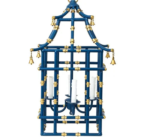 Découvrez notre exquise lanterne en bambou bleu marine et or. Cette lanterne pagode unique arbore d'élégants détails bleu marine et or, rappelant les motifs complexes de l'art traditionnel du bambou. L'ajout de clochettes ajoute une touche de fantaisie et de charme à cette pièce luxueuse. Illuminez votre espace avec sophistication et style.