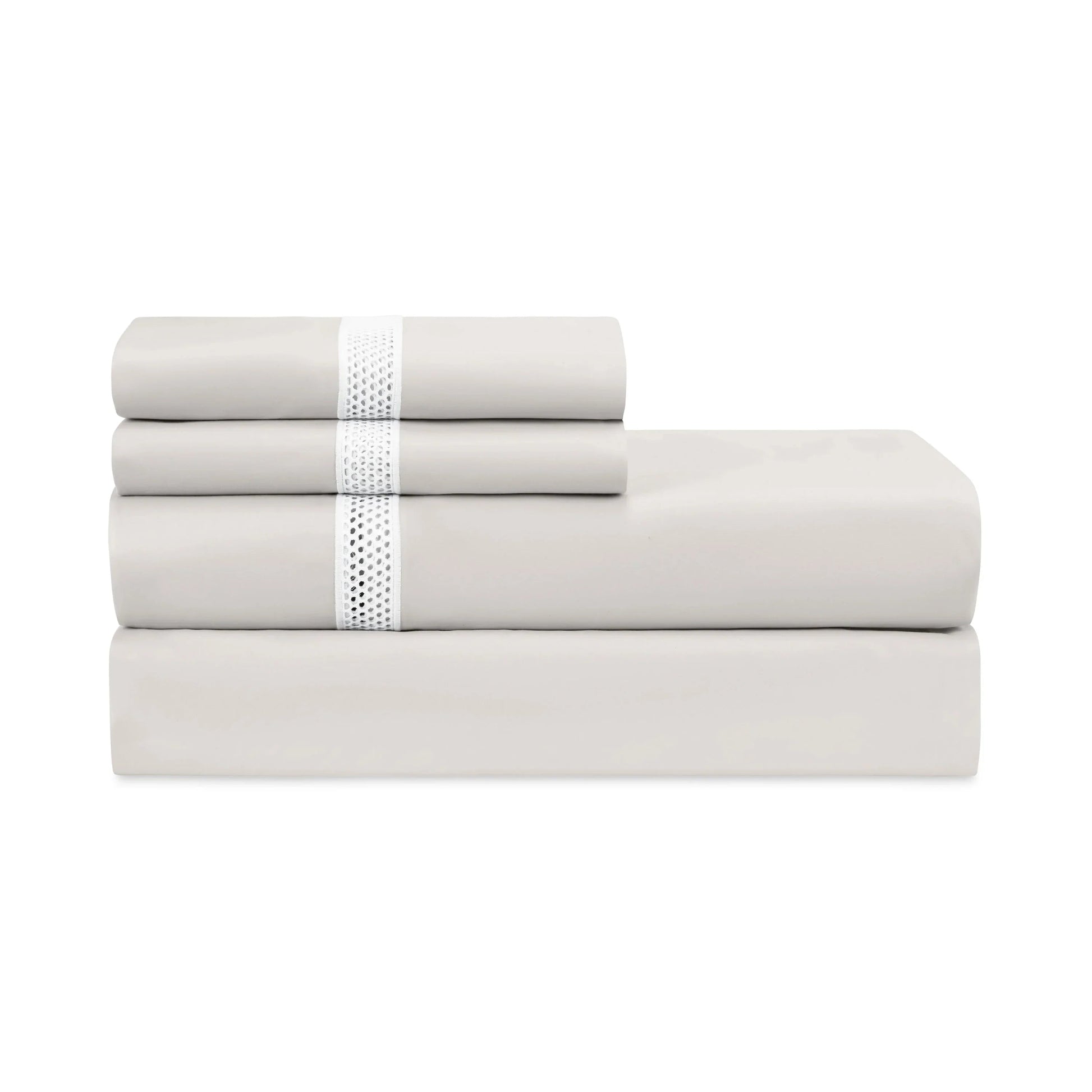 Les draps plats Ritz sont conçus avec un corps en percale solide et une dentelle guipure appliquée sur l'ourlet du poignet.