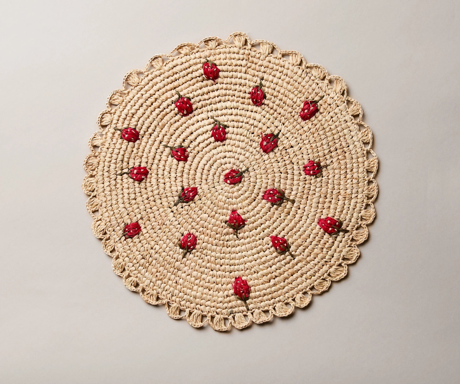 Set de table rond en raphia crocheté à la main avec motif fraise dispersée