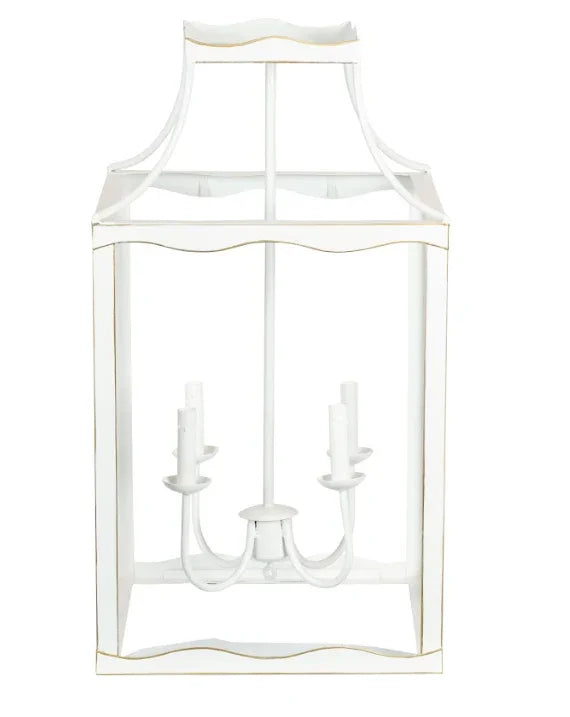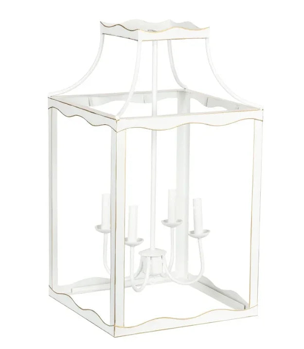 Découvrez notre élégante lanterne Blanc Doux et Or, un incontournable pour tout espace luxueux. Sa bordure dorée peinte à la main ajoute une touche d'opulence. Livrée avec chaîne et cache-piton pour une suspension facile. Électrifiée pour plus de confort, elle complètera parfaitement votre décoration intérieure.