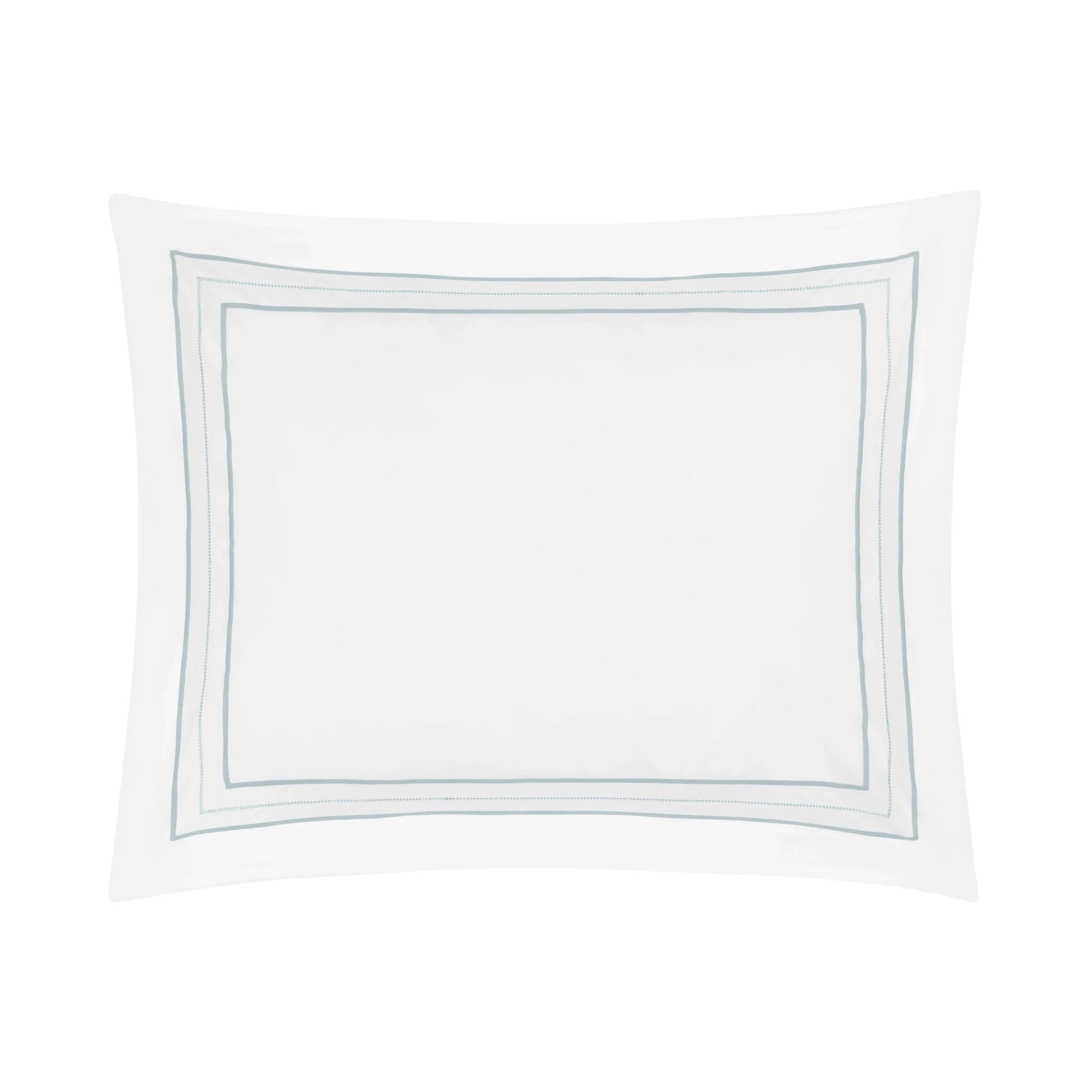 Les taies d'oreiller Triad sont conçues avec un corps en percale unie et un trio monochrome de points de satin - point d'ourlet - point de satin le long de l'ourlet de la bride.