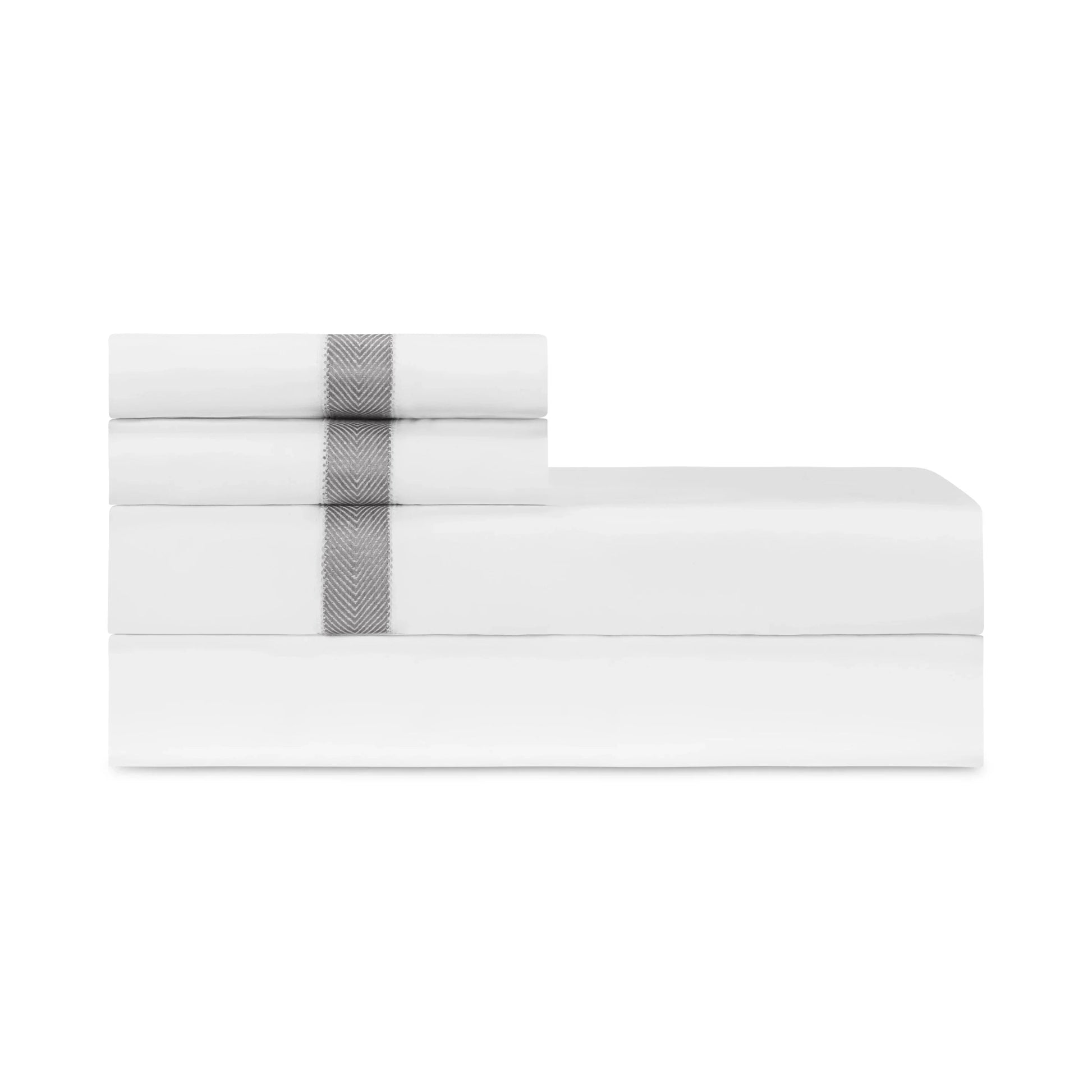 Les taies d'oreiller Yves sont conçues avec un corps en percale blanc Darcy de 600 fils et un insert en lin appliqué de 1', bordé d'un point d'ourlet guidé à la main, le long de l'ourlet du poignet.